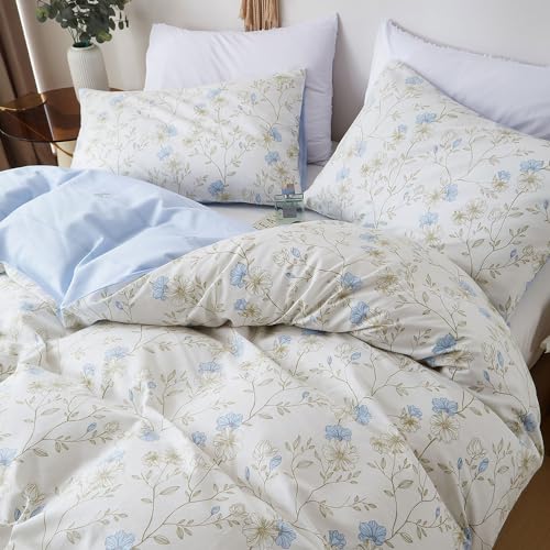 Nyescasa Housse de Couette 240x260 100% Coton Fleurs Floral Bleu et Blanc Réversible Parure de lit Adulte 2 Personnes Sets de Housses de Couettes avec Fermeture Éclair et 2 Taies d'oreiller 65x65 cm