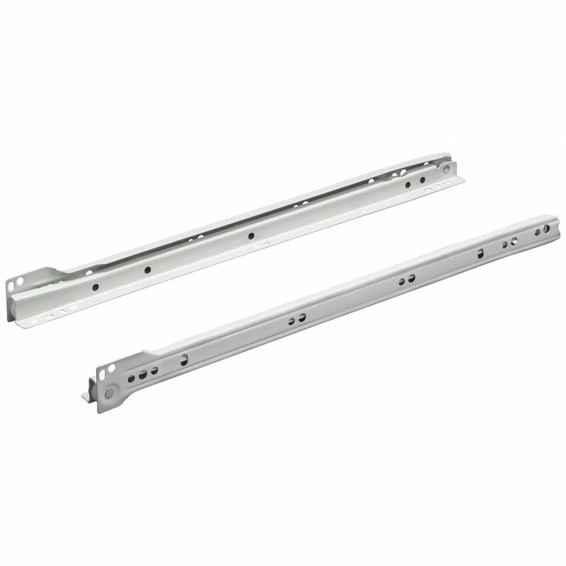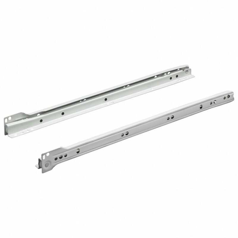 Ulisem – Coulisse pour tiroir 400 mm – Lot de 2 – Système de glissière à sortie partielle – Acier peint blanc – Charge max 20 kg