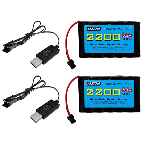 AMZZN 2PCS 7.2V 2200mah AA NiMH Batterie SM-2P Prise avec USB Câble de Charge pour Huina 1550 550 Télécommande Excavatrice, Camion, TR-211 RC Toy Voiture Sauvegarde Batterie