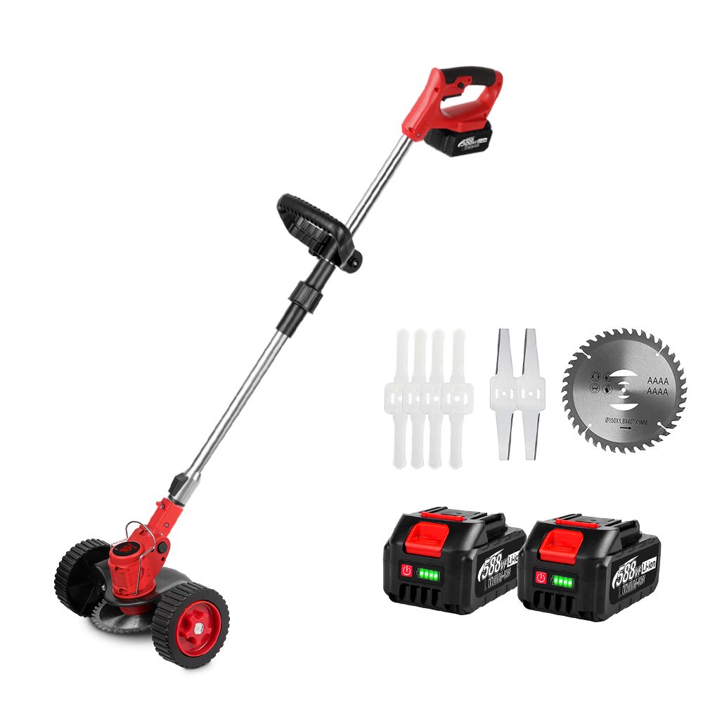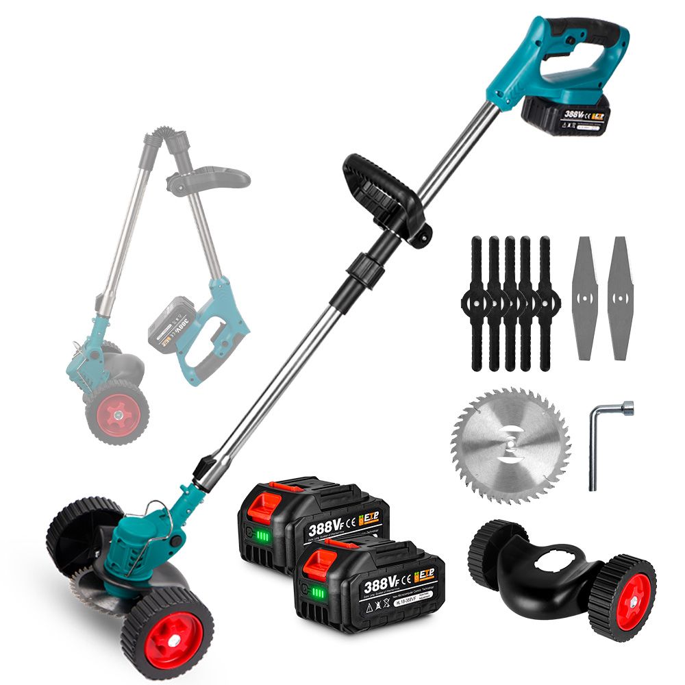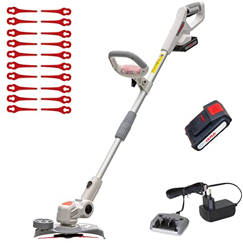 Debroussailleuse Electrique sans Fil, 21V Coupe Bordure, avec 1 Batterie et Chargeur Taille Bordure, avec 3 Types de Lames pour la Coupe de Jardin Pelouses et Terres Agricoles (avec Roues-Deux Piles)