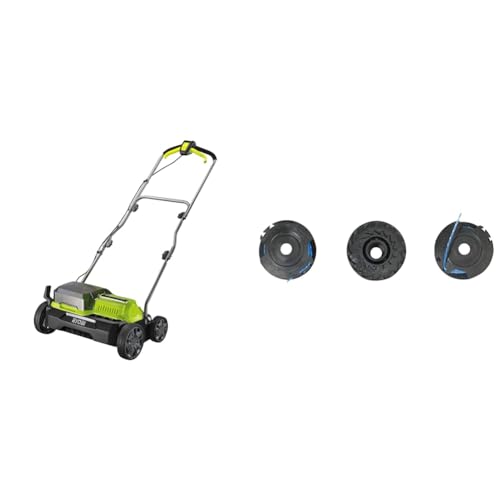 Ryobi RY18SFX35A-0 18V One+ Cordless 35cm Brushless Scarifier, 18 V, Vert & Lot de 3 Bobines Simple Fil Ø 1,6mm, Longueur 4,5m pour Coupe-Bordure Électrique sur Batterie - Fil Résistant