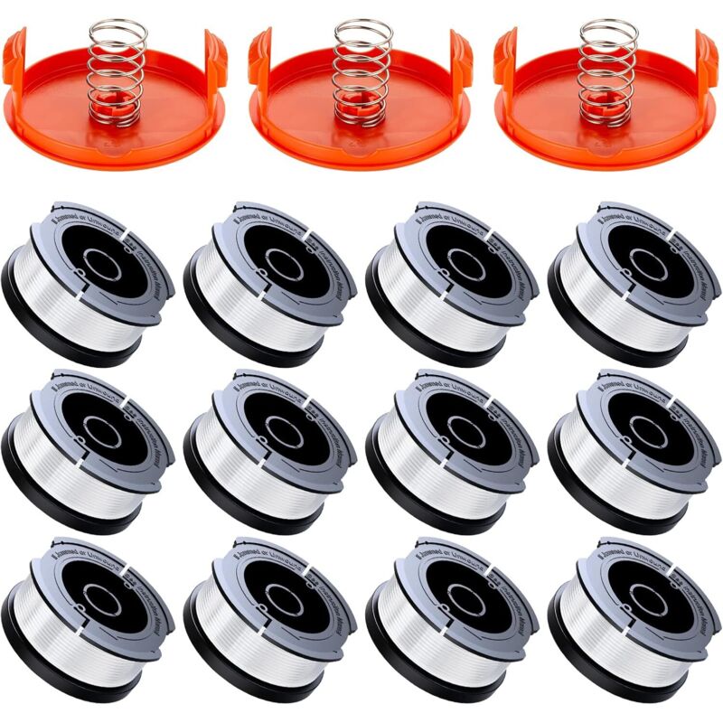 COEWUR 12pcs Bobine de Rechange de Tondeuse à Gazon en Nylon pour Coupe-Bordure Bobine de Fil Debroussailleuse avec 3 Couvre-bobines et 3 Ressorts pour Black et Decker