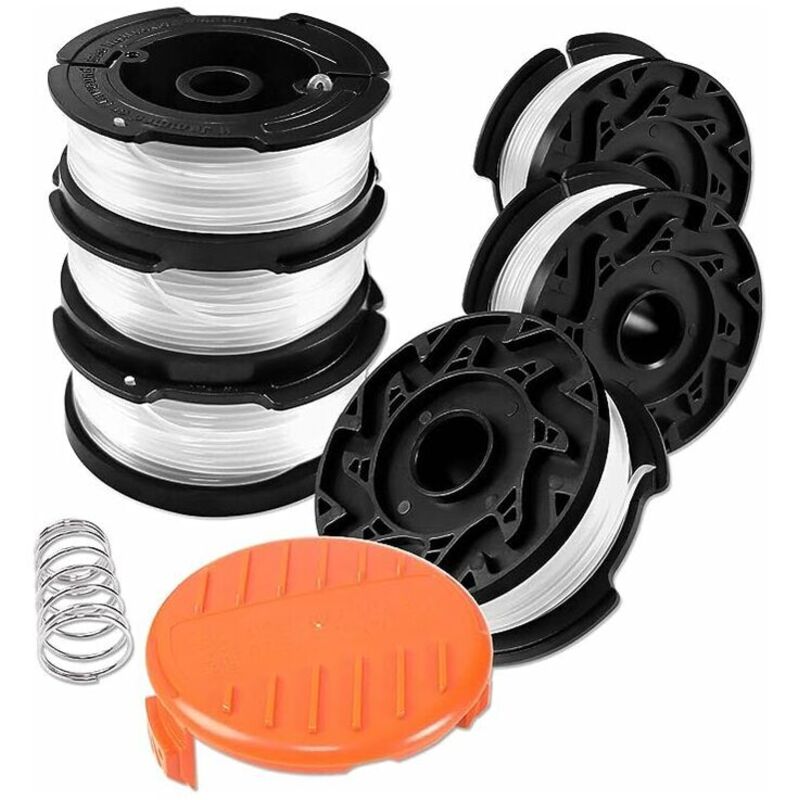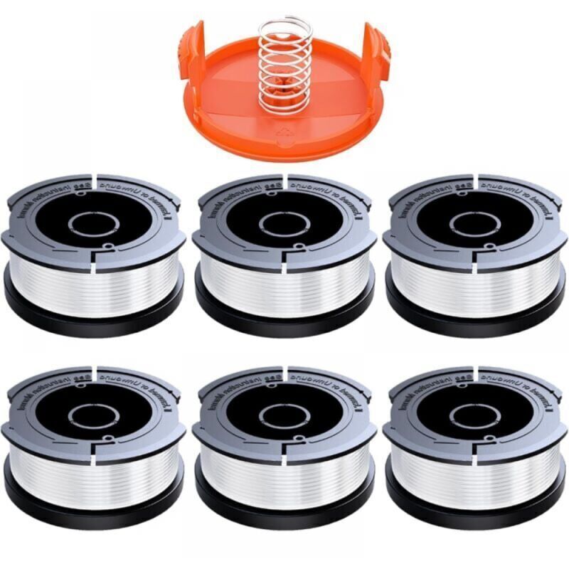 6 Pièces Bobine Fil Coupe Bordure Compatible avec Black et Decker,Ø1,65mm avec 10m ,Contient 6 Bobines de Coupe de Rechange,1 Couvercle de Rechange et 1 Ressort