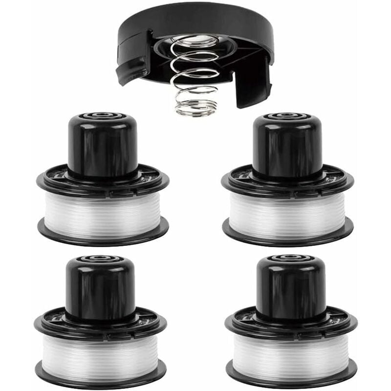Bobine Fil Coupe Bordure pour Black et Decker Coupe-Bordures, 4 Bobine de Fil Debroussailleuse avec 4 Couvercle de Bobine et 4 Ressort