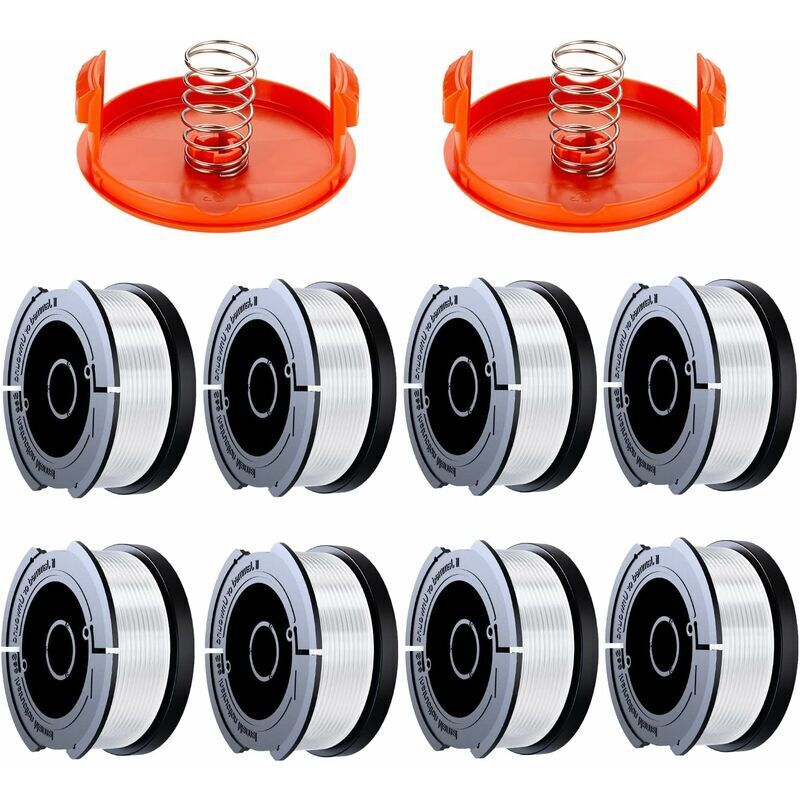 8 Pack Bobine Fil Coupe Bordure Compatible avec Black et Decker Coupe Bordures, Bobine de Fil Debroussailleuse(6 Fil Coupe Bordure,2 Couvercle,2