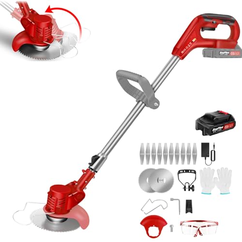 Coupe Bordure sans Fil avec Batterie 24V, Debroussailleuse Electrique sans Fil 800W avec Tête Ajustable et Lame en Acier Inoxydable, Débroussailleuse Idéal pour Tailler Pelouses, Arbustes et Jardins