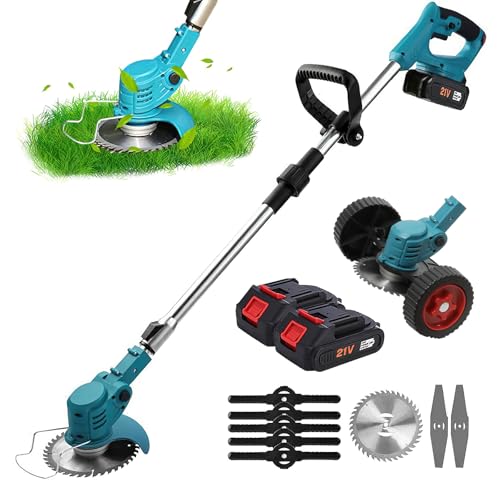 Débroussailleuse sans Fil 3 en 1 - Batterie 21V 2000mAh, Coupe Bordure Electrique & Taille Haies, roulettes Amovibles, Réglable en Hauteur, Léger - pour Jardin Familial & Pro