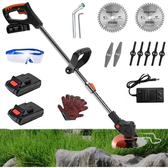 Coupe-Herbe sans Fil avec 2 Batterie et Lames MéTalliques Coupe Bordure Debroussailleuse électrique Bordure Puissante Taille Haie de Jardin Coupe-Mauvaises Télescopique Elagueuse sans Fil Coupe-Gazon