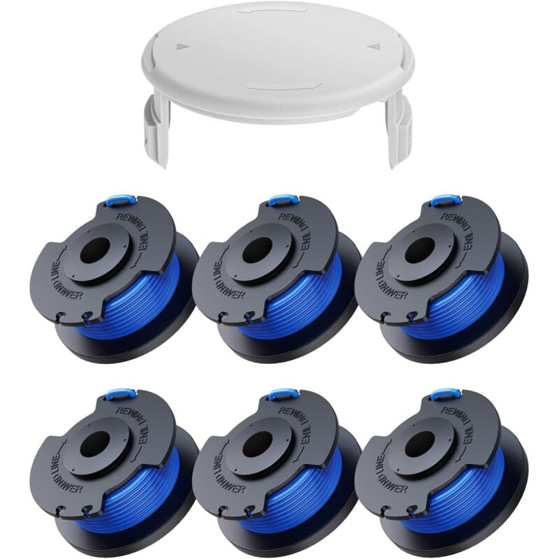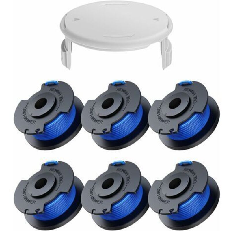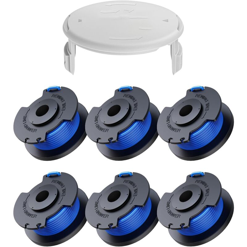 VURAHOME - Bobine Fil Coupe Bordure pour Ryobi Coupe-Bordures One+ 18V, 24V et 40V, 6 Bobine de Fil Debroussailleuse avec 1 Couvercle de Bobine,