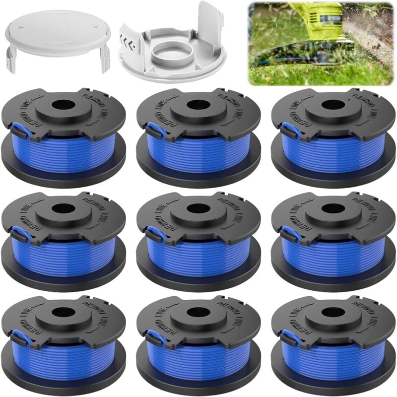10 Paquets Bobine de Rechange pour Coupe-bordure pouce pour Ryobi Compatible Avec Ryobi One + AC14RL3A, Coupe-fil Sans Fil , 8 Bobines + 2 Capuchons