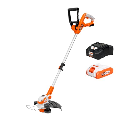 RURIS Trimmer Coupe-Bordure sans Fil 2024e - Moteur Électrique avec Balais, Diamètre de Coupe 300 mm, Batterie Li-ION 20V 4Ah et Chargeur Inclus, Orange
