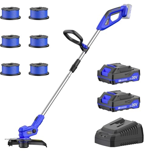 Coupe-Bordure sans Fil avec 2X 2.0Ah Batteries et Chargeur (Bleu Foncé) – Débroussailleuse Électrique Ultralégère 1,9kg, Largeur 30cm, 9000RPM, 6 Bobines – Idéal pour Finitions de Pelouse