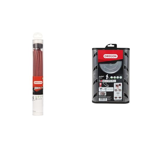 Oregon 525244 Fil de Coupe Strié Prédécoupé Techni-Blade, Rouge, 7 mm, 26 cm, 155 Pièces & Jet Fit Tête de Coupe à 4 Fils, Tête Universelle à Installation Facile pour Coupe-Bordure