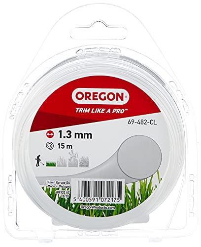 Oregon - Fil Coupe-Bordure en Nylon Pour Débroussailleuse et Coupe Bordure, Entretien de Jardin et Bricolage, Taille Universelle, Fil Rond, Bobine 1.3 mm x 15 m, Couleur Transparent (69-482-CL)