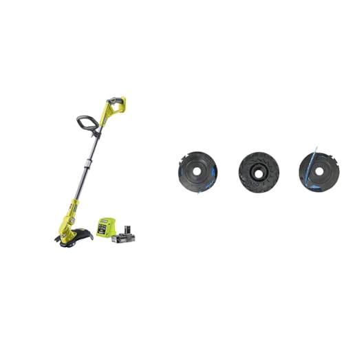 RYOBI - Dresse-Bordures 18V - Ø Lame dentelée 22 cm - Profondeur de Travail 4 Positions & Lot de 3 Bobines Simple Fil Ø 1,6mm, Longueur 4,5m pour Coupe-Bordure Électrique