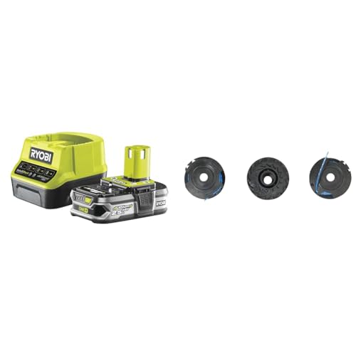 Ryobi 5133002237 Batterie d'outillage 18 V 2,5 Ah & Lot de 3 Bobines Simple Fil Ø 1,6mm, Longueur 4,5m pour Coupe-Bordure Électrique
