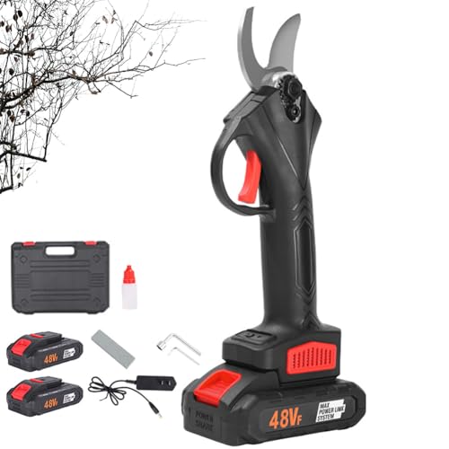 OmePS Sécateur électrique avec 2 Batteries de Grande capacité, sécateur à Batterie sans Fil 48 V pour Tailler Les Arbres sans Effort, Coupe des Branches jusqu'à 50 mm de diamètre, Portables