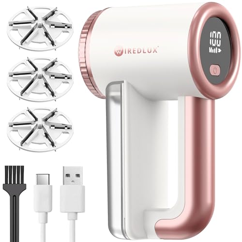 Rasoir Anti Bouloche Électrique WiredLux - Machine Anti Peluche Rechargeable pour Vêtement & Maison - Appareil Coupe Bouloches à 3 Vitesses, Lame à 6 Branches, Dual Protection