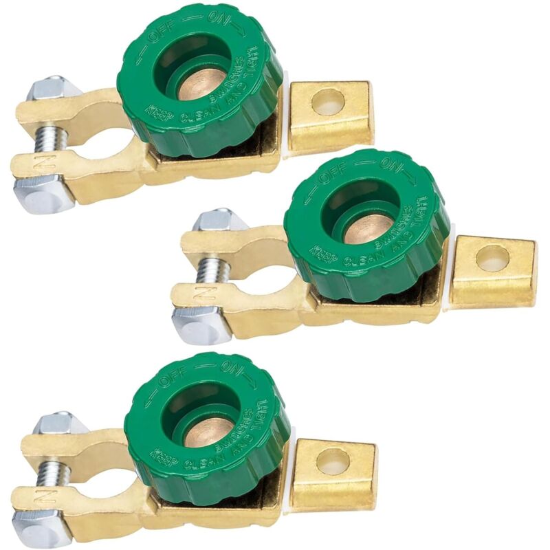 3 Pièces Interrupteur d'Isolateur de Coupe Batterie, Coupe Circuit Batterie 12V/ 24V, Connecteur Batterie avec Bouton Vert, 16-17 mm Batterie Voiture