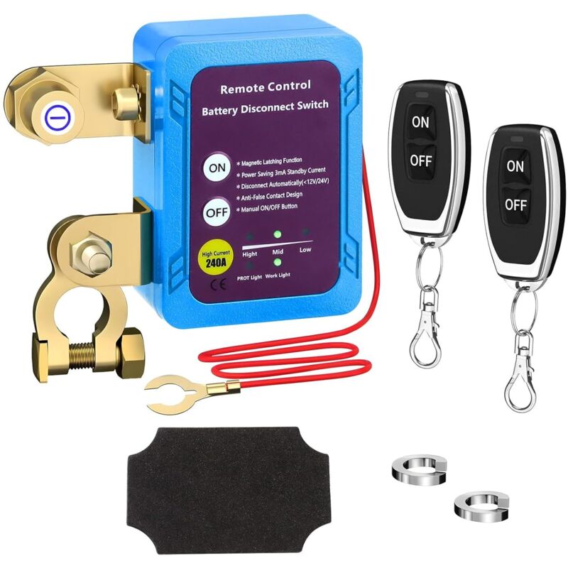 Disjoncteur de batterie télécommandé sans fil - 12 V - 240 A - Interrupteur d'arrêt automatique - Coupe circuit batterie pour voiture, camping-car,