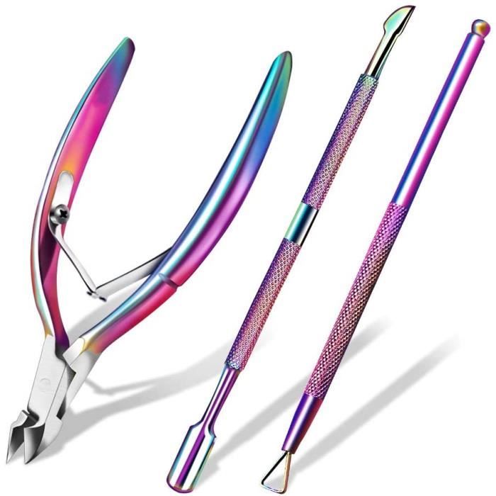 BZKSER Coupe cuticule ongle 3 pcs-Coupe-cuticules,Pinces à Cuticules,Rainbow Couleur à Double extrémité en Acier Inoxydable cuticules,Acier Inoxydable Manucure Pédicure Outils