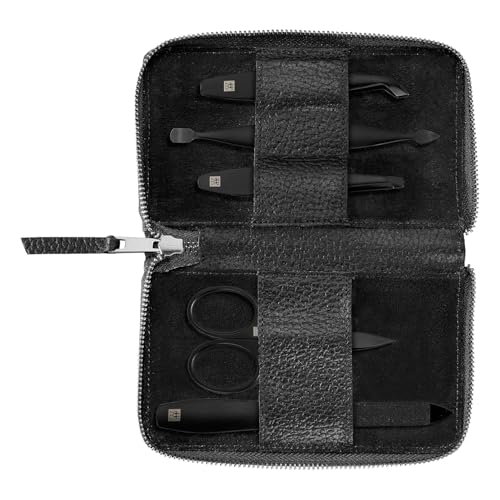 ZWILLING Manucure kit (5 pièces, fermeture à bouton-pression en cuir véritable, set de voyage, avec ciseaux à ongles et coupe-cuticules), Premium, Black Edition