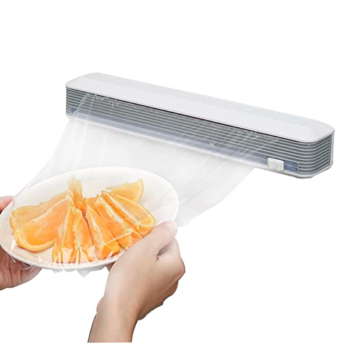 Abonda Film étirable - Boîte découpe Film étirable,Distributeur réutilisable avec Coupe-glissière, Film Alimentaire 2 en 1 pour Support Rangement Cuisine