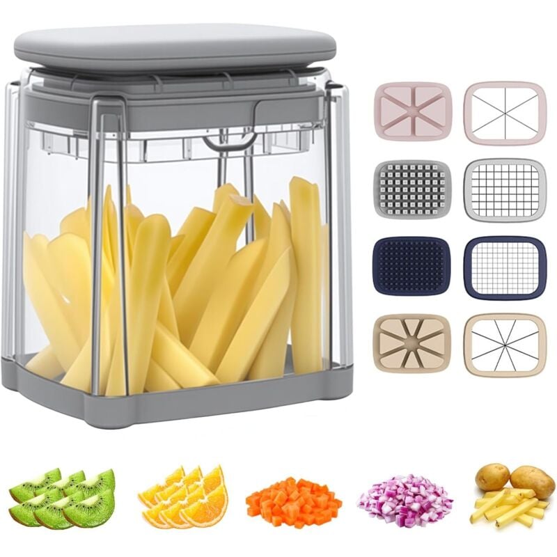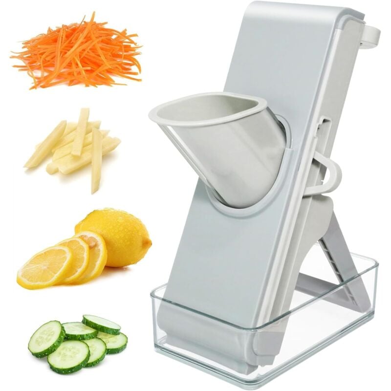 Mandoline de Cuisine Manuelle Multifonction Tous Coupe Légumes Lame en acier inoxydable, Julienne, Cubes, Fcoupe Patate Frite carotte, tomate (Gris)