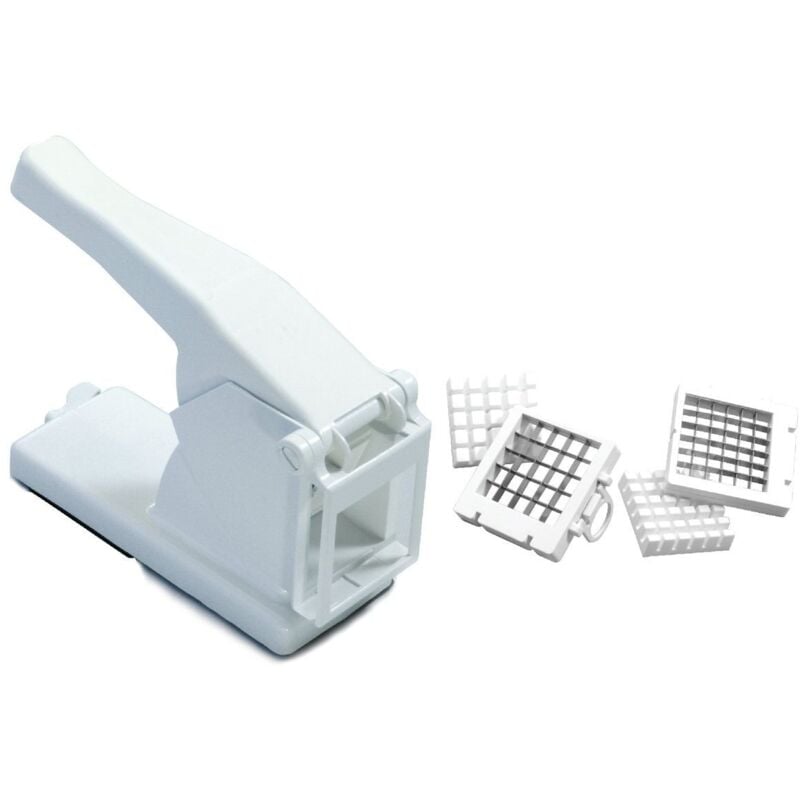 Fackelmann 45474 Coupe frite manuel, coupe légumes, coupe frite, ustensile de cuisine, Plastique, Blanc, 13,1 x 9,2 x 7,8 cm