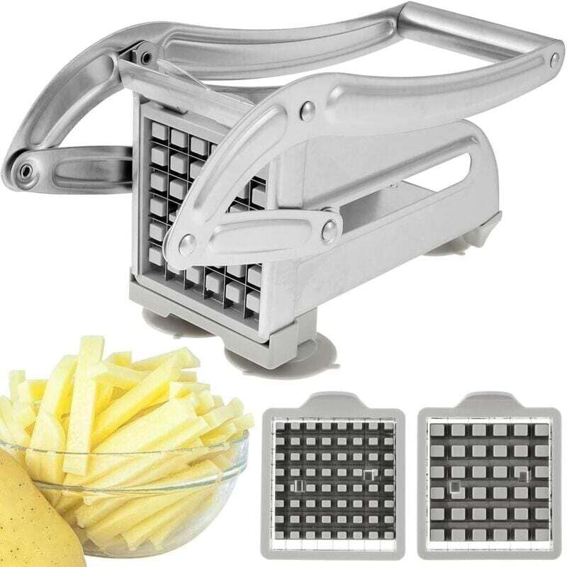 Dpzo - jamais utilisé] Coupe Frite,Coupe Frites Manuel, Coupe Frites Professionnel, Coupe Pomme de Terre pour Frite, Grille Coupe Frite inox (Blanc)