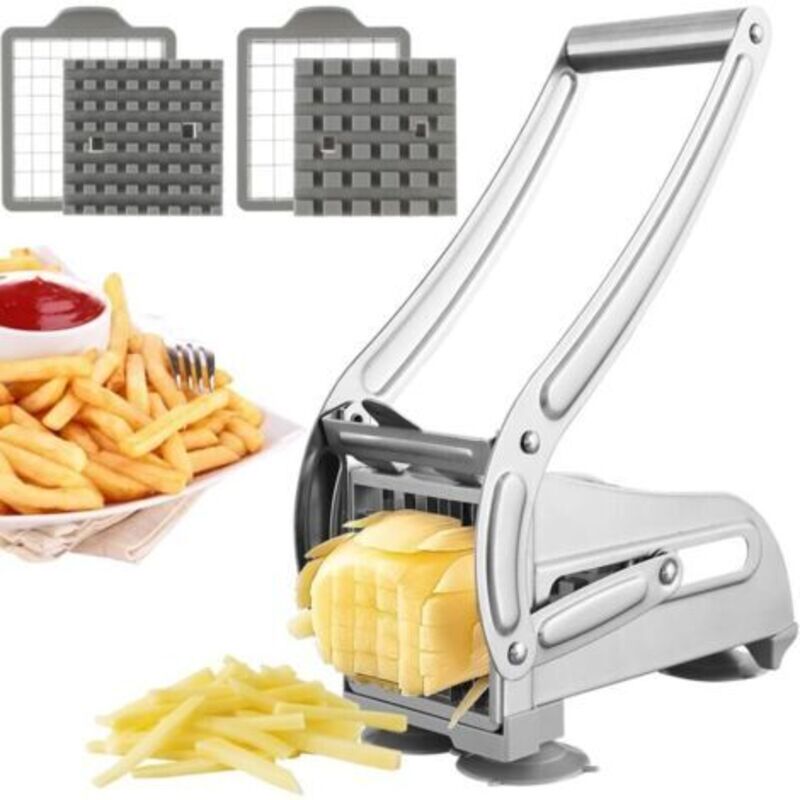 Coupe Frites, Coupe Frite Professionnel avec des 2 Lames, Technologie Antidérapante, Coupe-Légumes, Accessoires pour Friteuse (Inox),