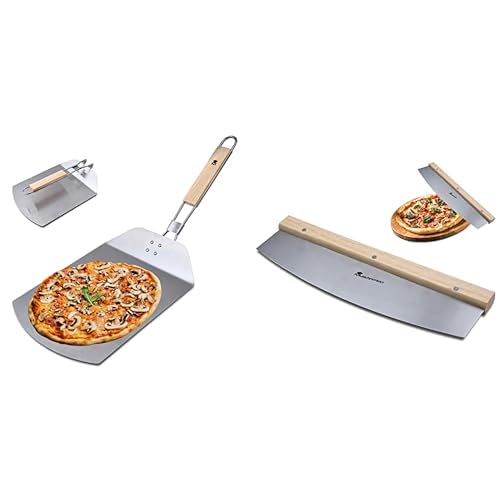 MasterPRO Foodies Pelle à pizza + coupe-pizza | Acier inoxydable | Poignée ergonomique | Coupe et retire facilement les pizzas | Design professionnel et résistant