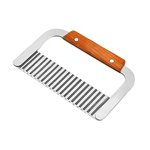 Outil de Coupe Froissé en Acier Inoxydable Coupe-Frites de Pommes de Terre Trancheuse de Carottes avec Manche en Bois Couteau de Coupe de LéGumes Alimentaires
