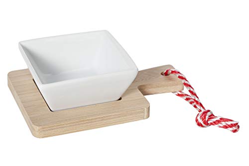 Premier Housewares 0722277 Coupelle d'Apéritif en Porcelaine Blanc avec Un Plateau en Bambou