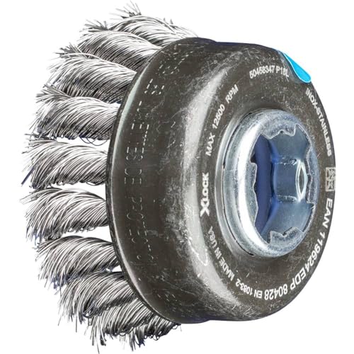 PFERD 43306037 Brosse coupelle Ø 80 mm, nouée, fil d'acier inoxydable 0,50 mm, douille X-lock, pour un changement d'outils rapide et confortable