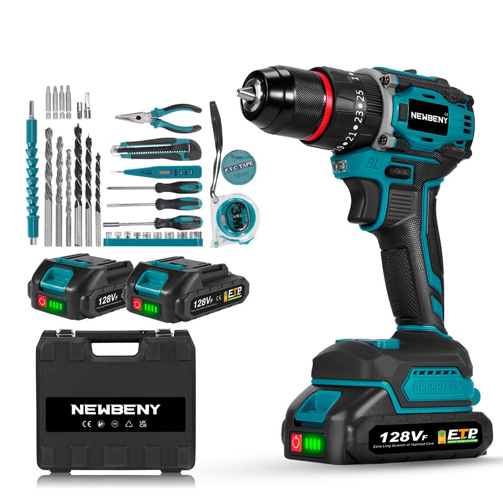 Perceuse à percussion sans fil 55 N.m, 21 réglages de couple, visseuse sans fil multifonction avec 2 batteries et 30 accessoires