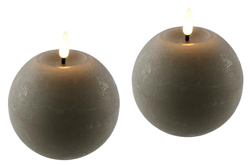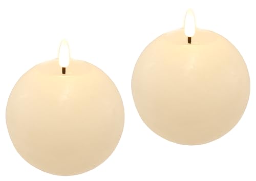 Lot de 2 bougies sphériques LED en cire véritable à piles - Flamme réaliste avec fonction minuterie - Bougies décoratives rondes pour couronne de l'Avent ou bougie en cire véritable - Bougie pilier