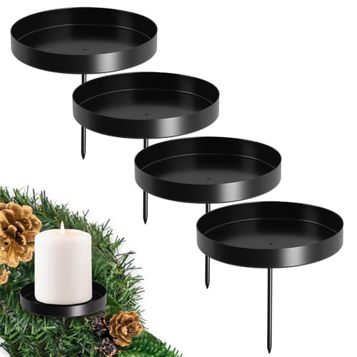 Lot de 4 bougeoirs rétro pour couronne de l'Avent - 8 cm - Noir - En métal - Pour dîner aux chandelles, salle à manger et décorations de cheminée