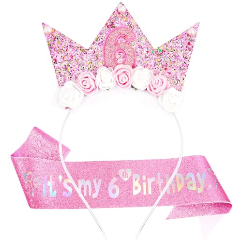 3 Pièces Echarpe Anniversaire Couronne Princesse Birthday Girl Couronne Princesse Enfant Diademe Enfant Decoration Anniversaire Fille Parfait pour FêTes D'Anniversaire DéCorations(6Ans)