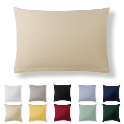 Alreya Taie Oreiller 50x70 Coton - Beige - 100% Jersey Coton, Housse de Coussin 50x70 cm, Taies d'oreiller en Jersey avec Fermeture éclair 50 x 70 cm