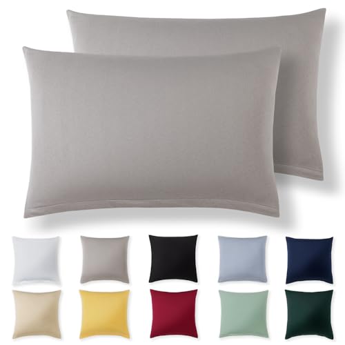 Alreya Taie Oreiller 50x70 Coton (Lot de 2) - Gris Clair - 100% Jersey Coton, Housse de Coussin 50x70 cm, Taies d'oreiller en Jersey avec Fermeture éclair 50 x 70 cm