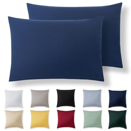 Alreya Taie Oreiller 50x70 Coton (Lot de 2) - Bleu - 100% Jersey Coton, Housse de Coussin 50x70 cm, Taies d'oreiller en Jersey avec Fermeture éclair 50 x 70 cm