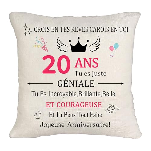 Cadeau d'anniversaire 20 Ans Cadeaux Pour Femme Housse de Coussin Décoration d'intérieur Anniversaire 20Ans Cadeau De Noël Et d'action De Grâce Pour Elle Coussin Décoratif d'anniversaire 20 Ans