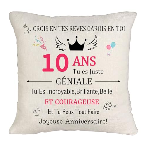 Cadeau d'anniversaire 10 Ans Cadeaux Pour Femme Housse de Coussin Décoration d'intérieur Anniversaire 10Ans Cadeau De Noël Et d'action De Grâce Pour Elle Coussin Décoratif d'anniversaire 10 Ans