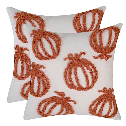 Tosleo Lot de 2 Halloween Housses de Coussin d’Automne 45 x 45 cm Citrouille Touffeté Petit Orange Action de Grâce Coton Lin Décoratif Taie d'oreiller pour Canapé Jardin Maison