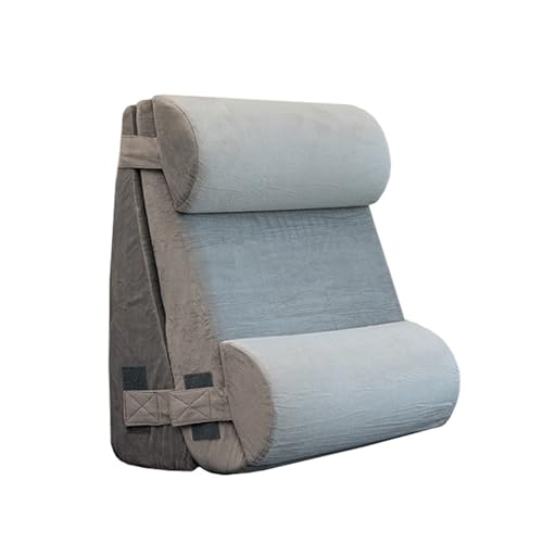 GDJGNUDK Coussin De Lecture Triangulaire, Coussin Cale pour Le Dos avec Coussin de Nuque et Poches Réglables, Soutien du Dos ou du Genou, pour Canapé-lit Réglable Soutien du Cou(Gray,60 * 50 * 20cm)