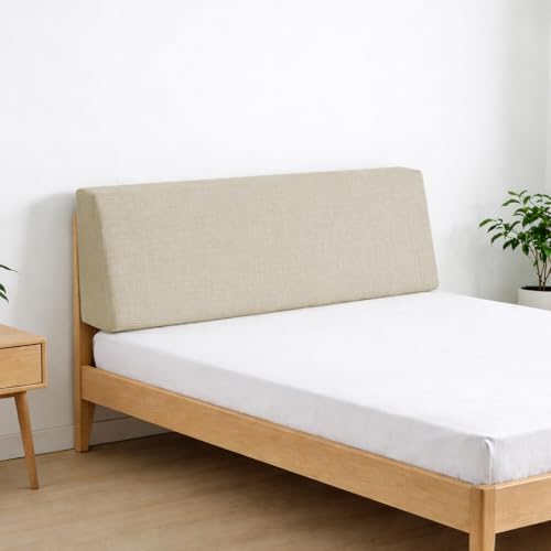 EXZFW Coussin Tête de Lit en Lin, Grand Coussin de Lecture pour Lit ou Canapé, Dossier Canapé Ergonomique, Coussin Cale Dos Ferme pour Soutien Lombaire et Cervical,Beige 2,100x40x20cm