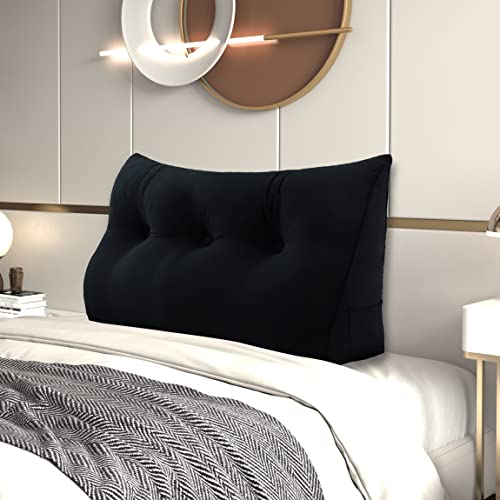 Johnear Coussin de Lecture pour lit ou canapé Velours, Traversin Gros Coussin Dossier Repos,Oreiller Triangulaire Coussin Coin, tête de lit,Coussin Lombaire, cale Dos Plage, Noir 140 x 20 x 50 cm