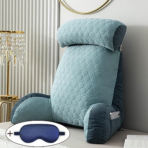 WINARA Oreiller De Lecture avec Accoudoirs,Confort Coussin de Soutien Lombaire,Housse Amovible,Confort Et Ergonomie Coussin Cale Dos Canapé (Blue Gray)