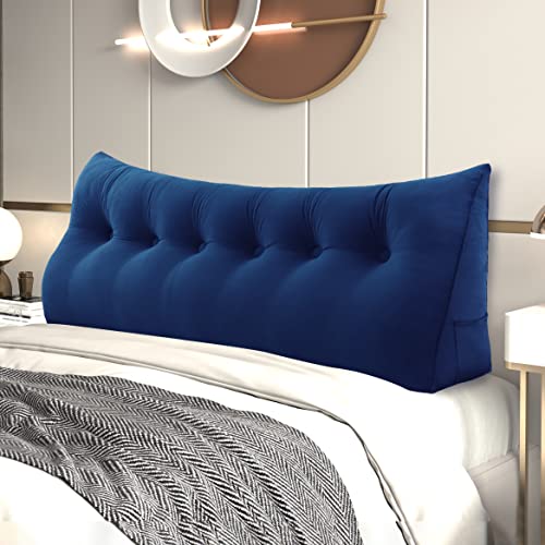 Johnear Coussin de Lecture pour lit ou canapé Velours, Traversin Gros Coussin Dossier Repos,Oreiller Triangulaire Coussin Coin, tête de lit,Coussin Lombaire, cale Dos Plage, Bleu Marine 140 cm